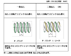 「リード」は、ネジが1回転した際に移動する距離を意味します。例えば、ネジが1回転する ごとに進む距離が10mmであれば、そのネジのリードは10mmとなります。一般的なネジはリードとピッチが等しい1条ネジです。